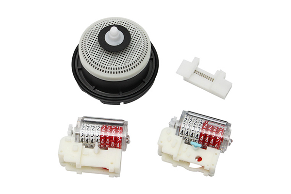 活塞式水表機芯由計數(shù)機構(gòu)及計量機構(gòu)組成,其中計數(shù)機構(gòu)由插銷、齒輪盒及計數(shù)器組成,而計量機構(gòu)則由計量室、活塞轉(zhuǎn)子、隔板、襯套、撥叉及蓋板等幾個部件組成。